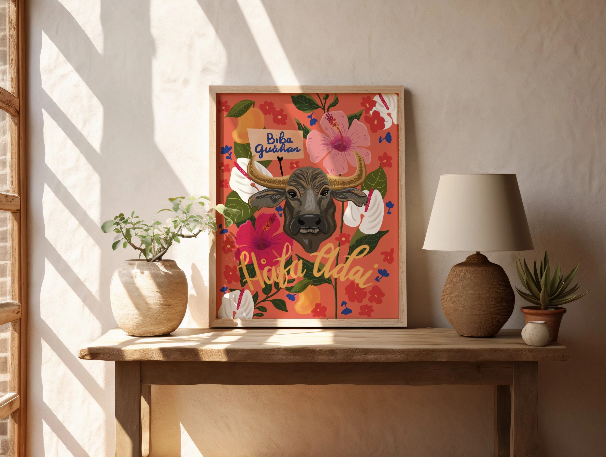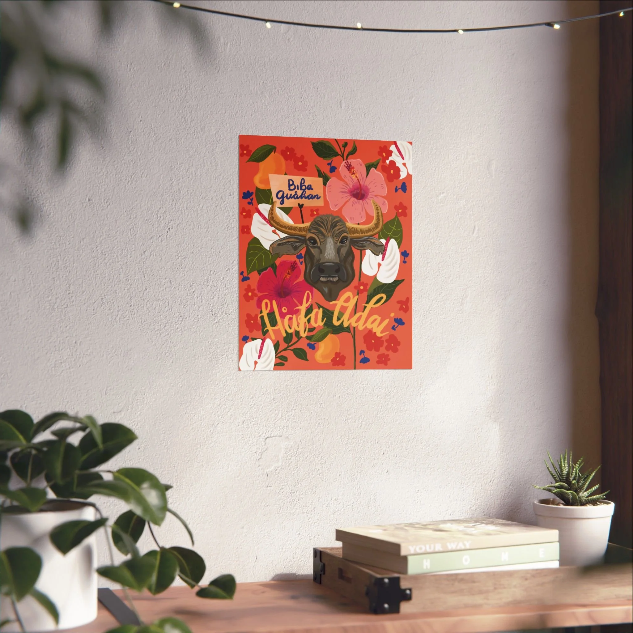 This matte vertical poster brings the Carabao Biba Guahan imagery into your space with calm, museum-quality presence. Printed on archival museum-grade paper using long-lasting giclée inks, the colors stay vivid without glare thanks to a light-absorbing matte finish. The result is a tactile, gallery-ready print that hangs quietly in a living room, studio, or office — an artwork that invites slow looking and conversation. Available in many sizes to suit narrow walls or tall frames, it’s made for indoor display and crafted to retain its tone over years of gentle display.