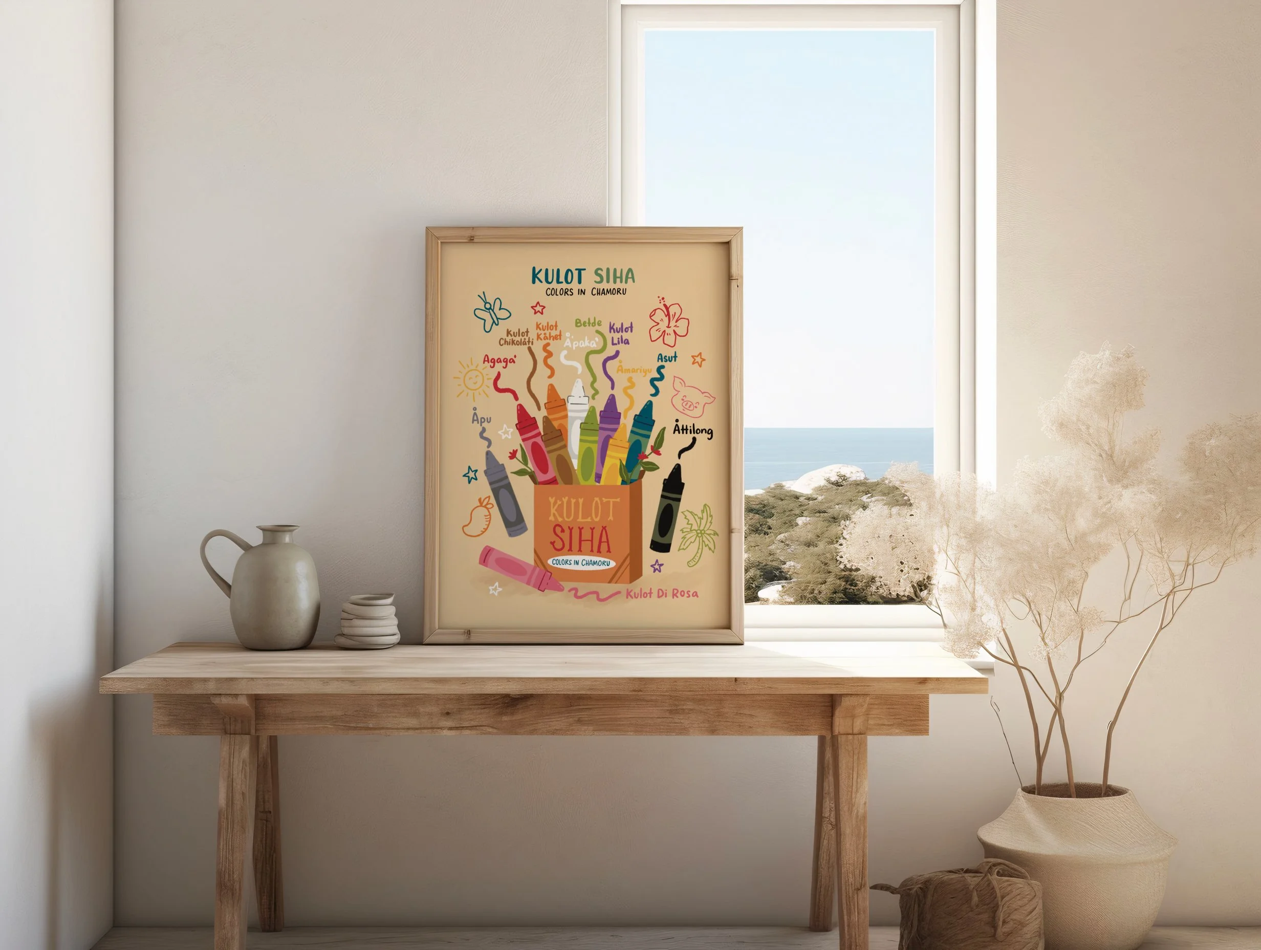 These matte vertical posters celebrate Kulot Siha CHamoru color and culture with museum-grade materials and vivid giclée printing. Each print carries deep, saturated hues that stay true over time, rendered on archival paper that resists yellowing. The matte finish soaks up light, giving images a soft, tactile look that suits quiet living rooms, home altars, or curated gallery walls. Available in 46 sizes to fit small nooks or statement displays, these prints are made for indoor spaces where color and detail matter. Produced across trusted partners in the USA, UK, and Japan, they arrive ready to frame or pin, bringing a calm, reverent presence to rooms where island memory and contemporary design meet.